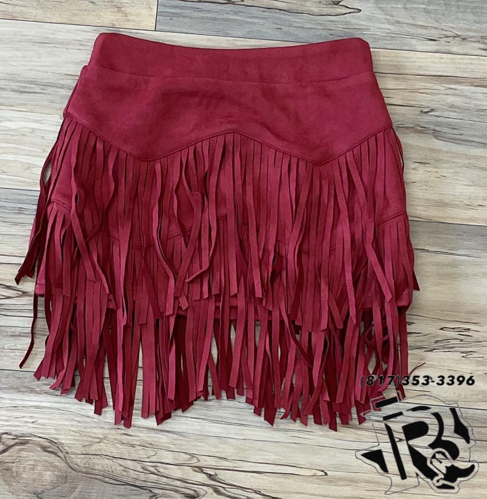 GIRLS LINA FRINGE BURGUNDY SKIRT