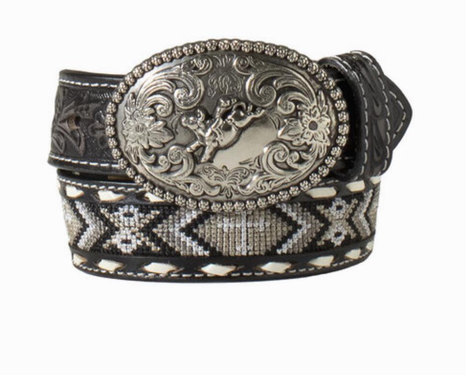 NOCONA BOY'S BLACK EMBROIDERED INLAY BELT | N4441601