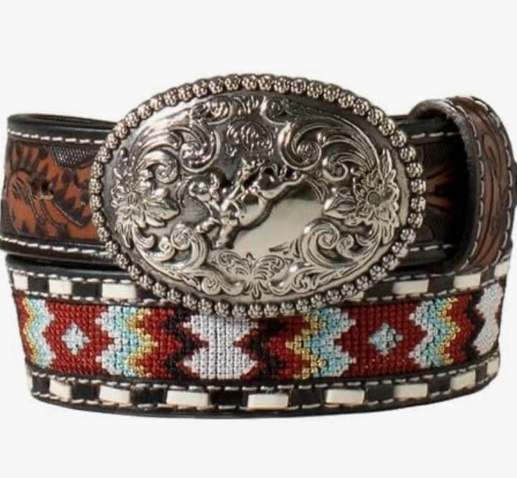 Nocona Western Belt Boys Embroidered Inlay Buck Lace Brown |N4441702