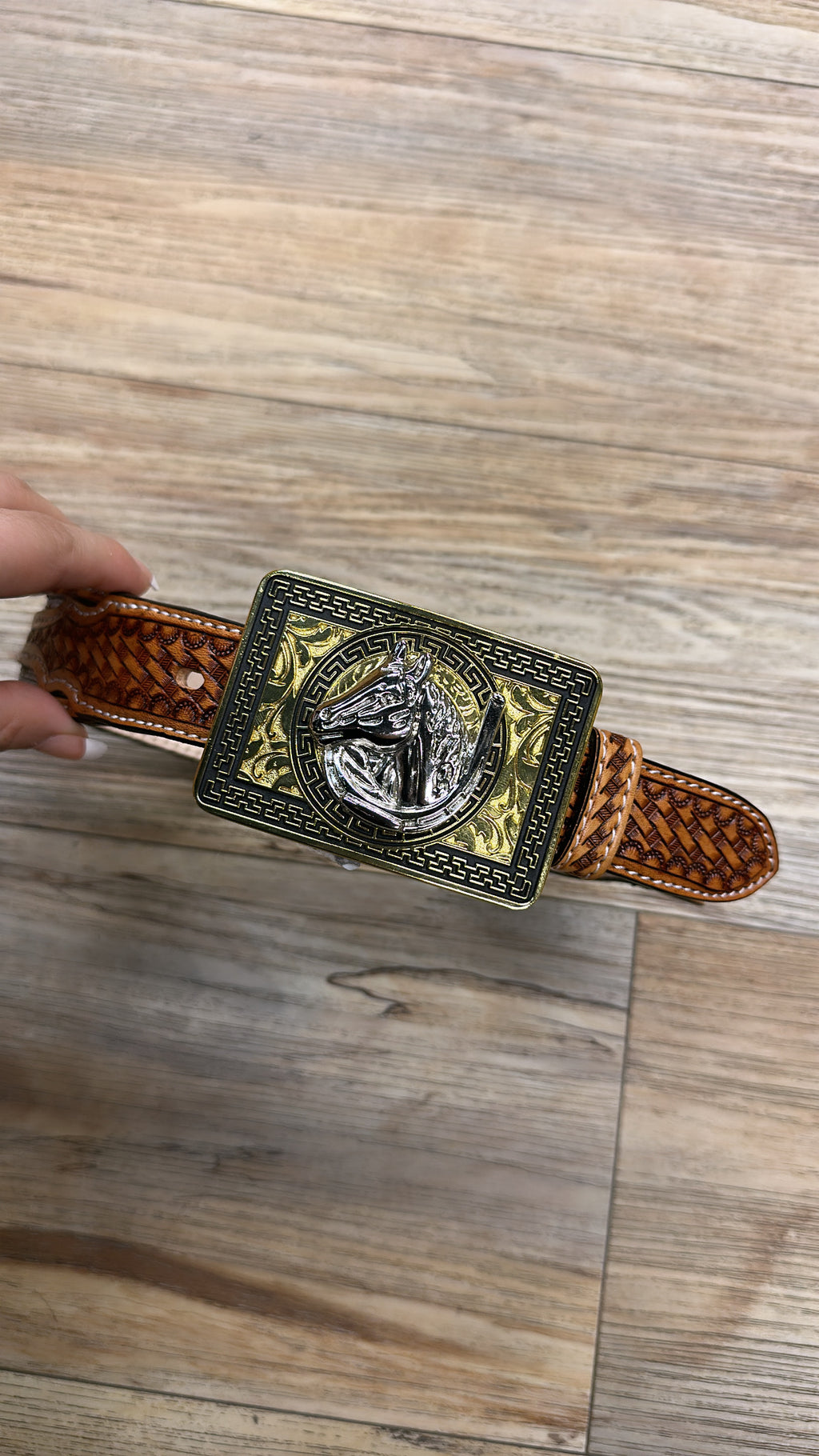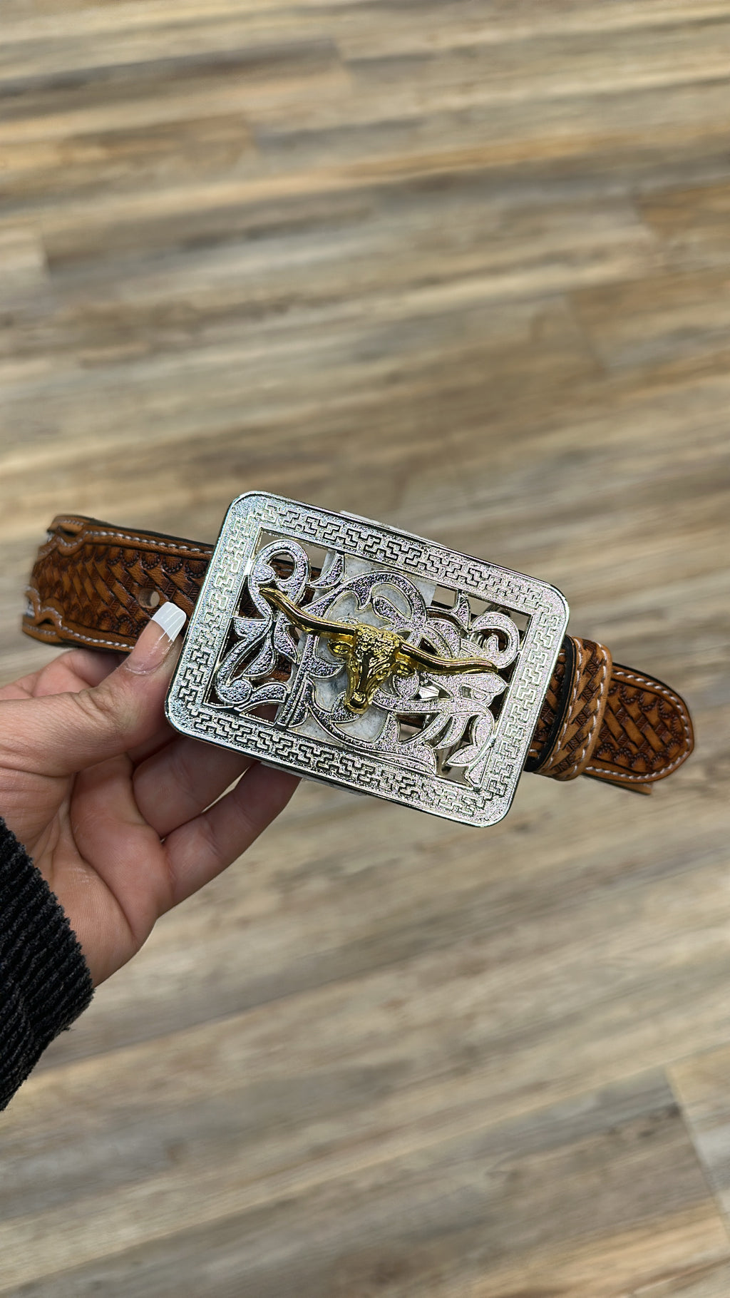 Nocona Western Belt Girls Longhorns Horses Leather Brown |N4444402