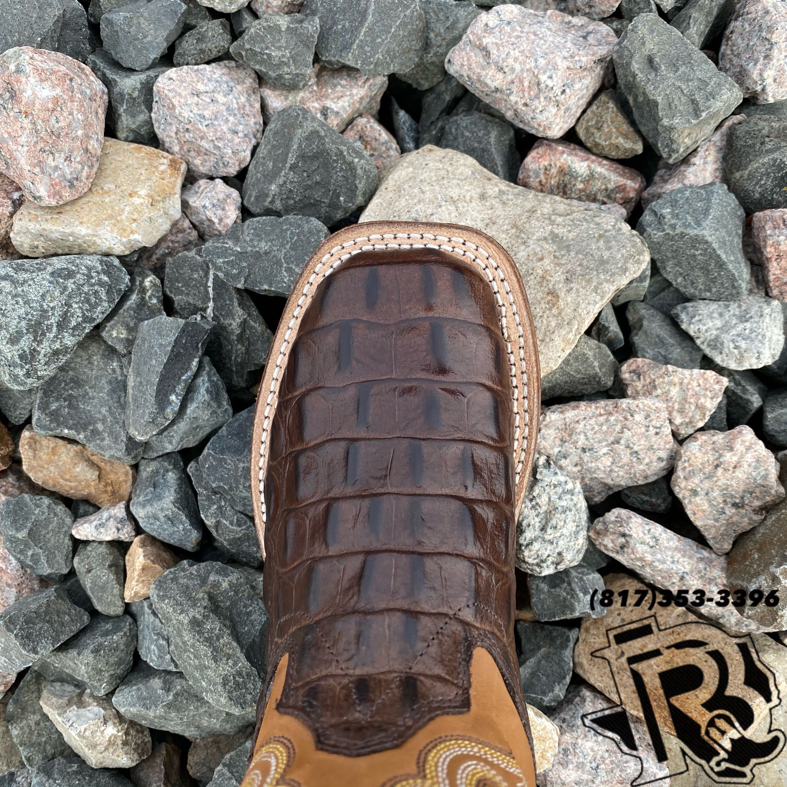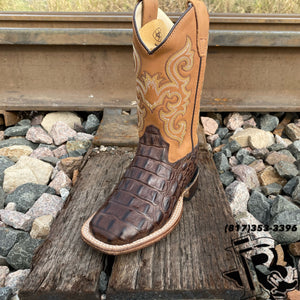 OLD WEST: INFANT/CHILDREN/YOUTH SQUARE TOE CAIMAN HORNBACK PRINT CHOCOLATE BSI1830 BSC1830 BCY1830