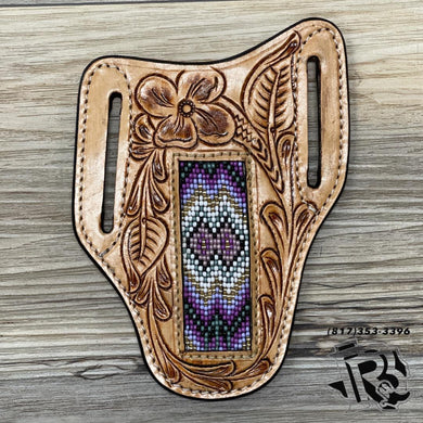 “ OSCAR “ | MEN KNIFE SHEATH TOOLED LEATHER BEADED | IRON SPUR