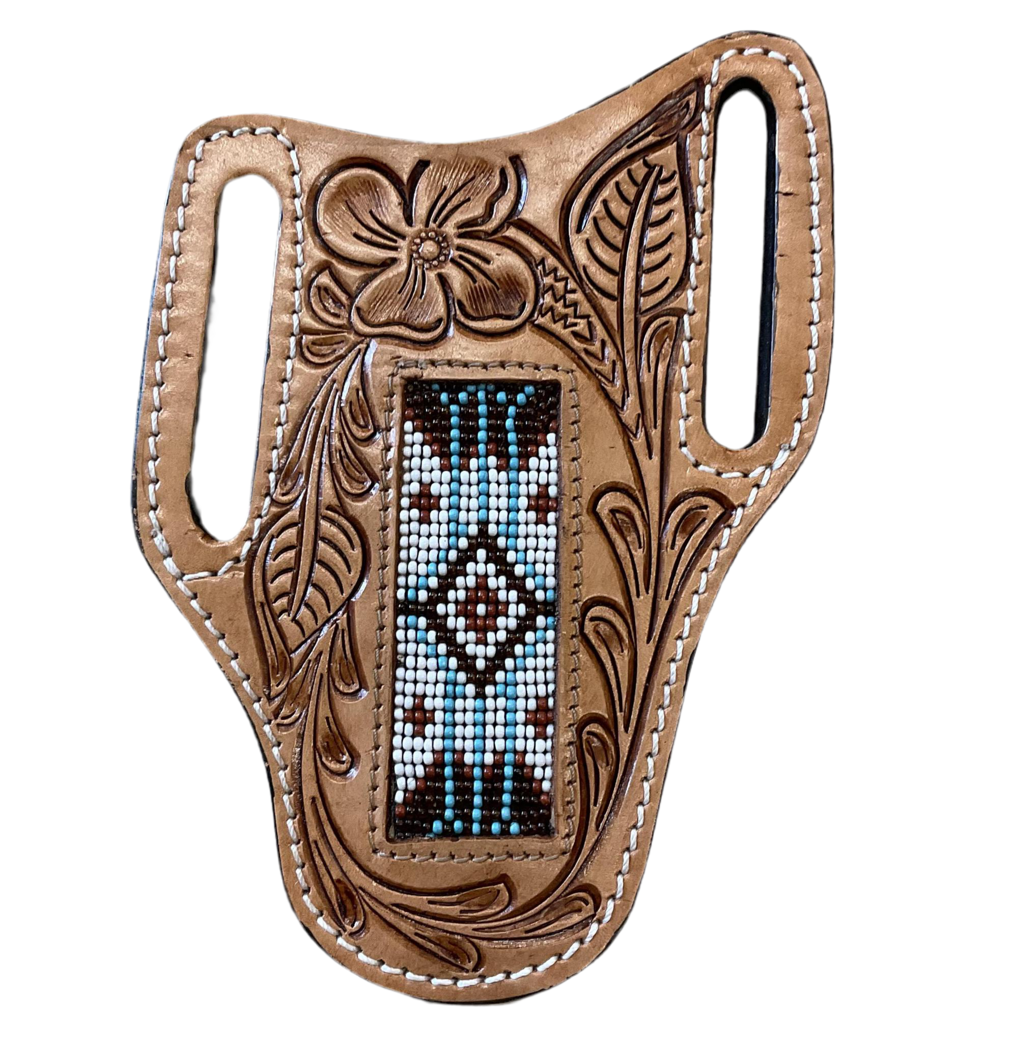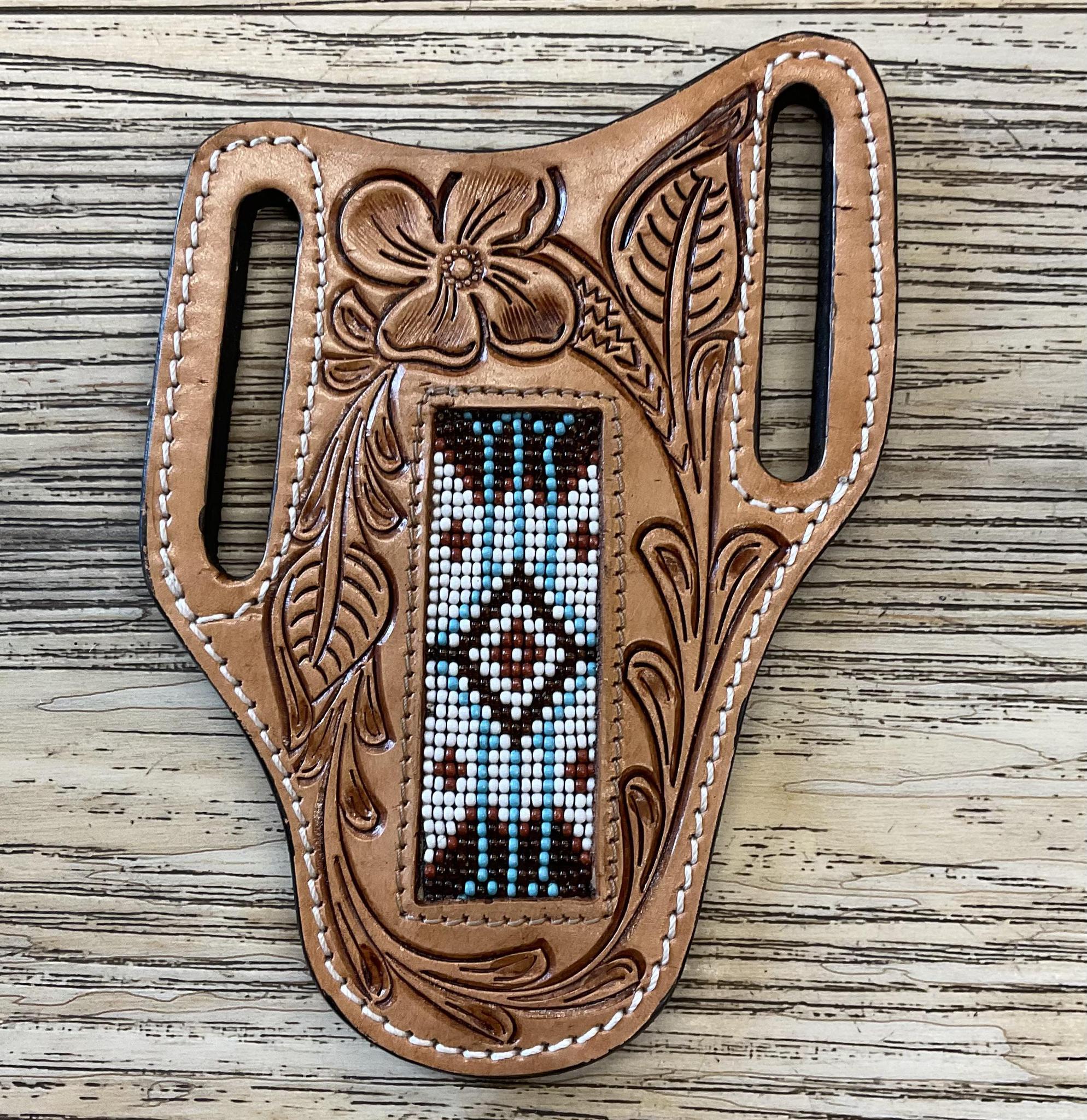 “ ANTHONY “ | IRON SPUR WESTERN CO. KNIFE SHEATH WESTERN TOOLED LEATHER BEADED