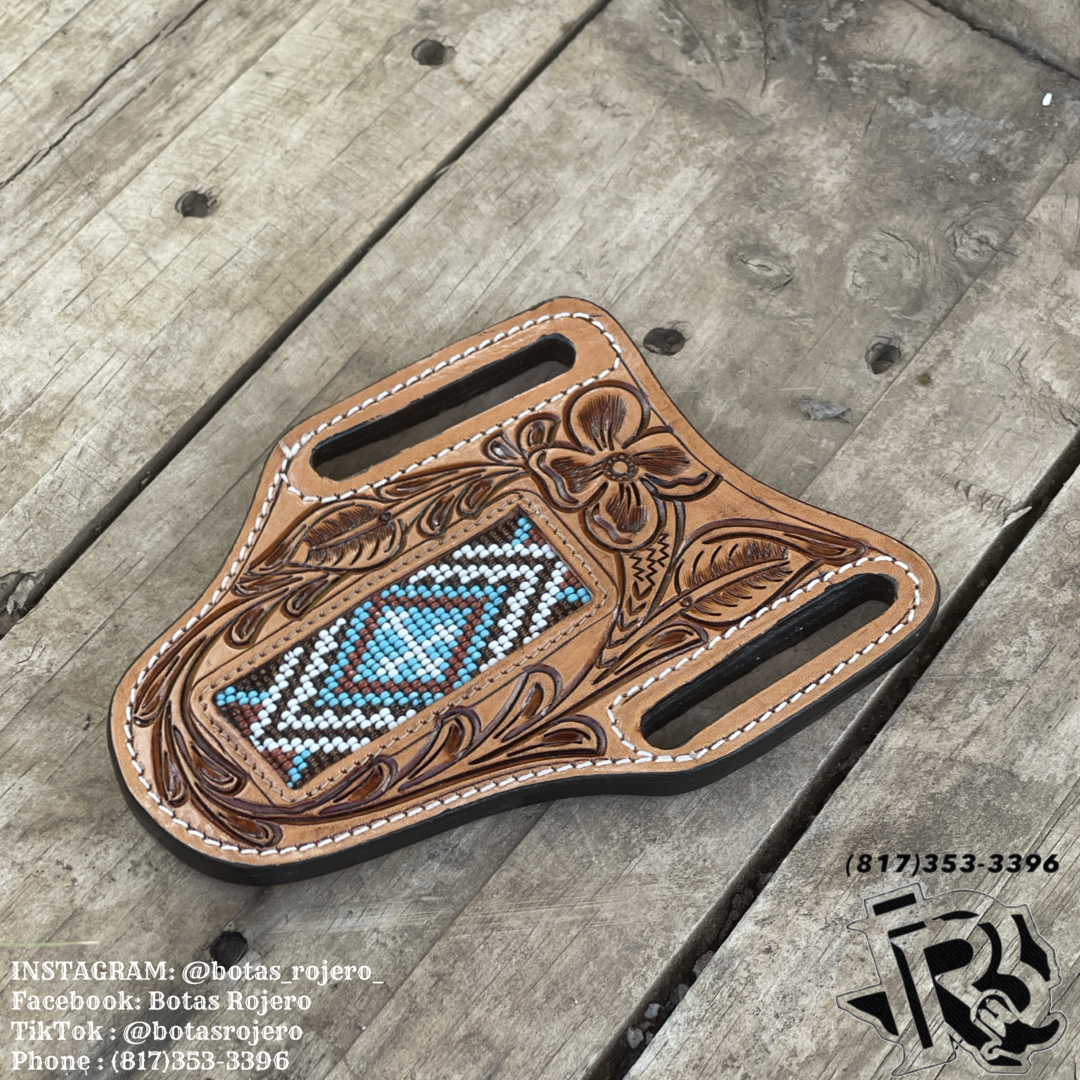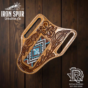 “ JAIME “ | KNIFE SHEATH WESTERN TOOLED LEATHER BEADED | IRON SPUR