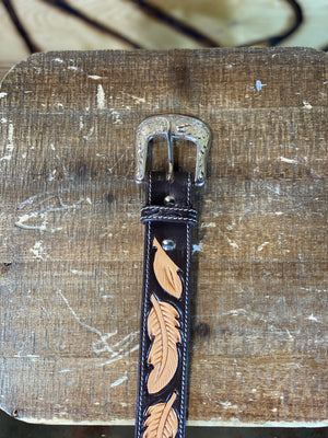 TWISTED X BELT | TOOLED LEATHER FEATHER X-1032 FINAL SALE