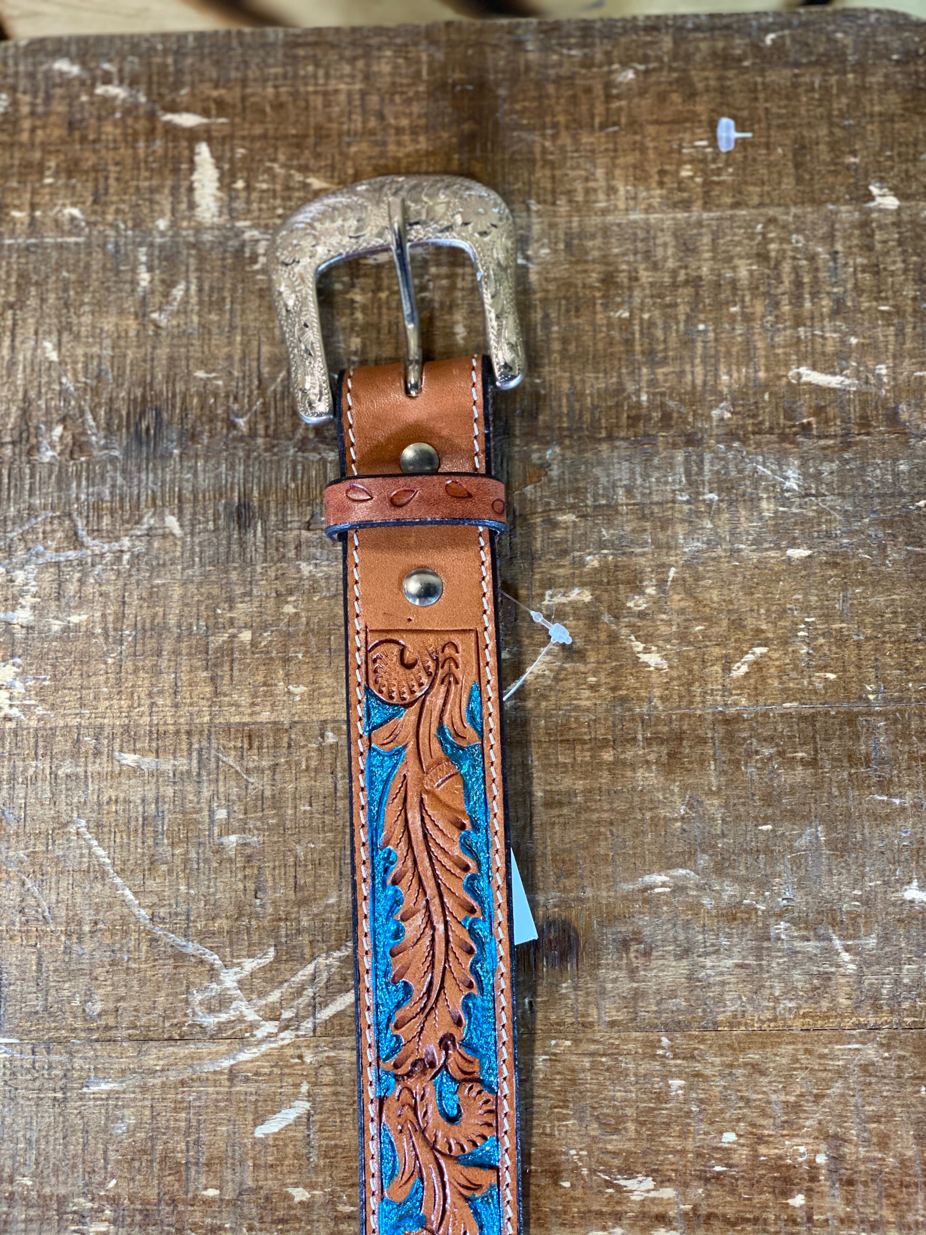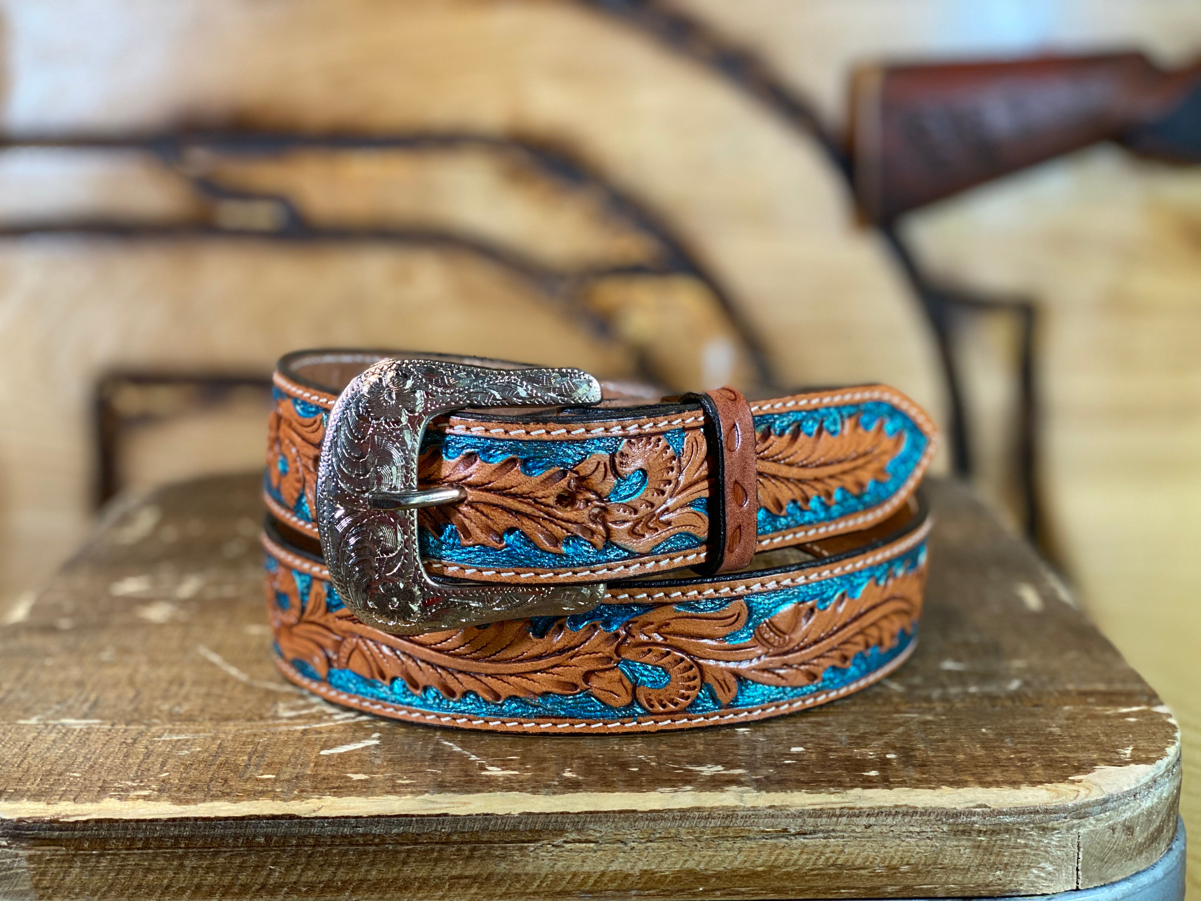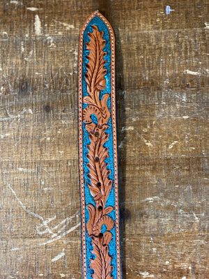 X-1037 TWISTED X BELT TOOLED LEATHER WITH TURQUOISE