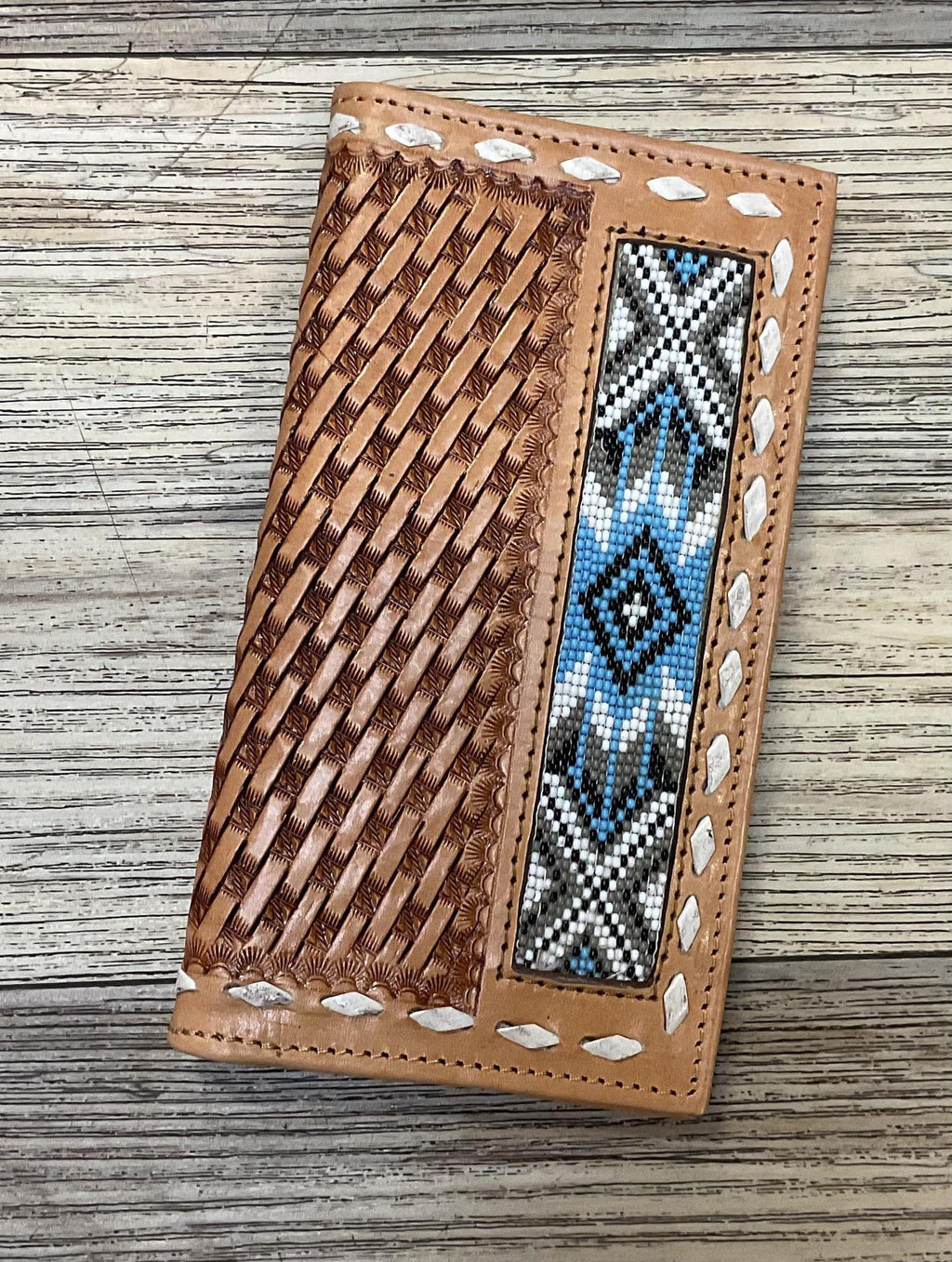 “ Damian “2.0| MEN BI FOLD WESTERN TOOLED LEATHER WALLET BEADED