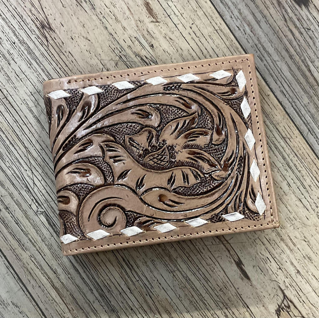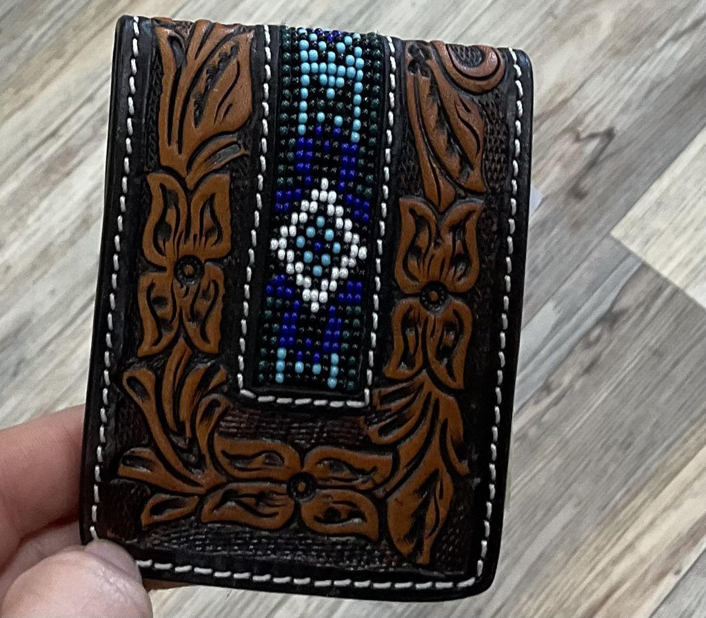 PAUL “ | IRON SPUR WESTERN CO. MEN BI FOLD WESTERN TOOLED LEATHER WALLET BEADED