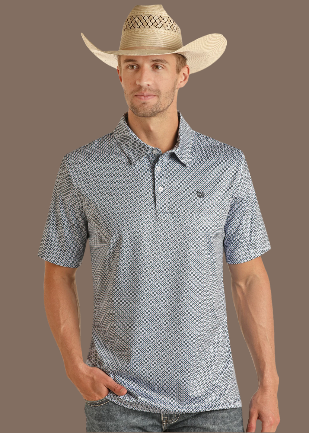 MEN’S ROCK & ROLL NATURAL MINI AZTEC PRINTED POLO |BM51T06618