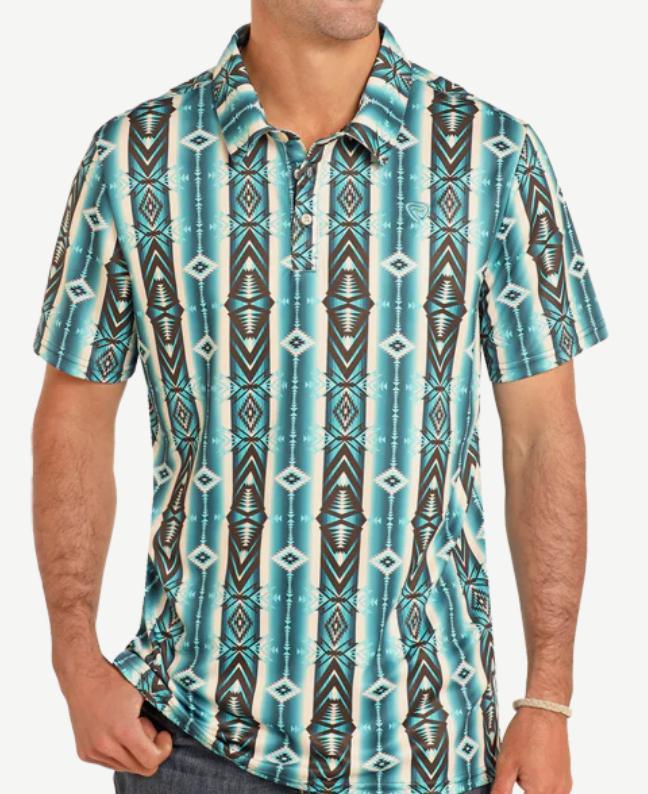 MEN’S ROCK & ROLL NATURAL AZTEC PRINTED POLO | BM51T06004