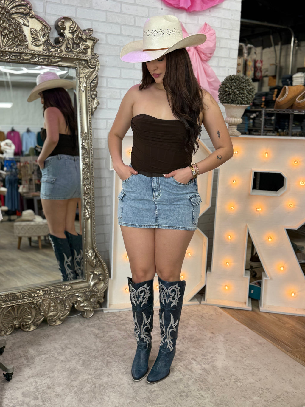 ‘’HEATHER’’ CARGO DENIM SKIRT