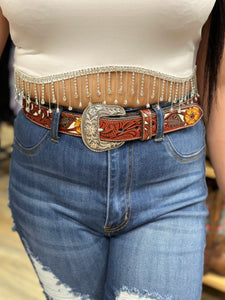 ‘’ HEATHER ’’ WOMENS TOOLED BROWN BELT