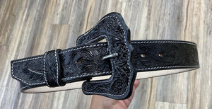 ‘’ HEATHER ’’ WOMENS TOOLED BLACK BELT