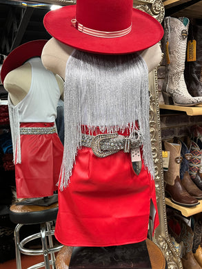 LAURA FAUX LEATHER FRINGE SKIRT RED