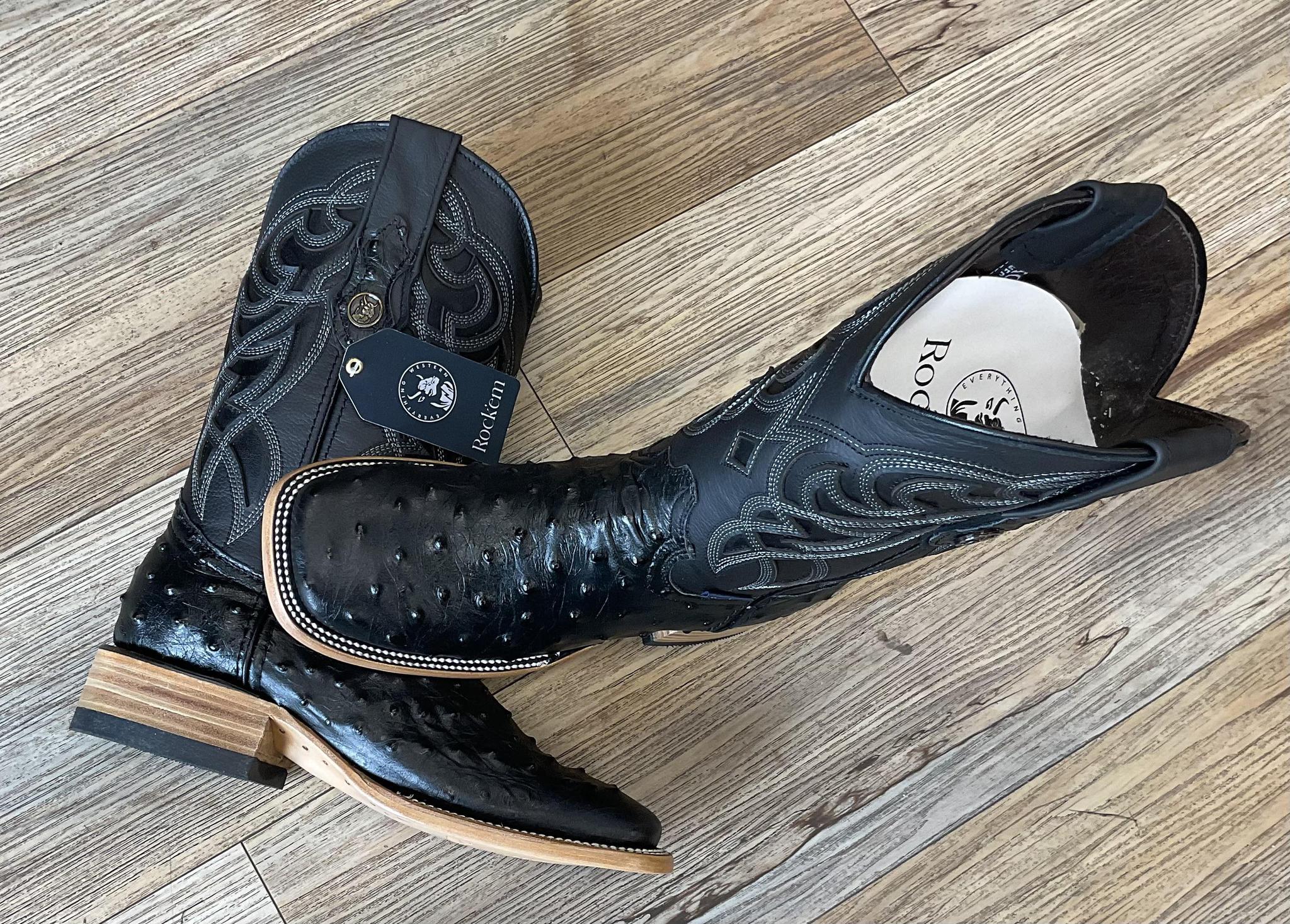 ‘’ADAN’’ BLACK OSTRICH PRINTED BOOTS