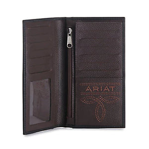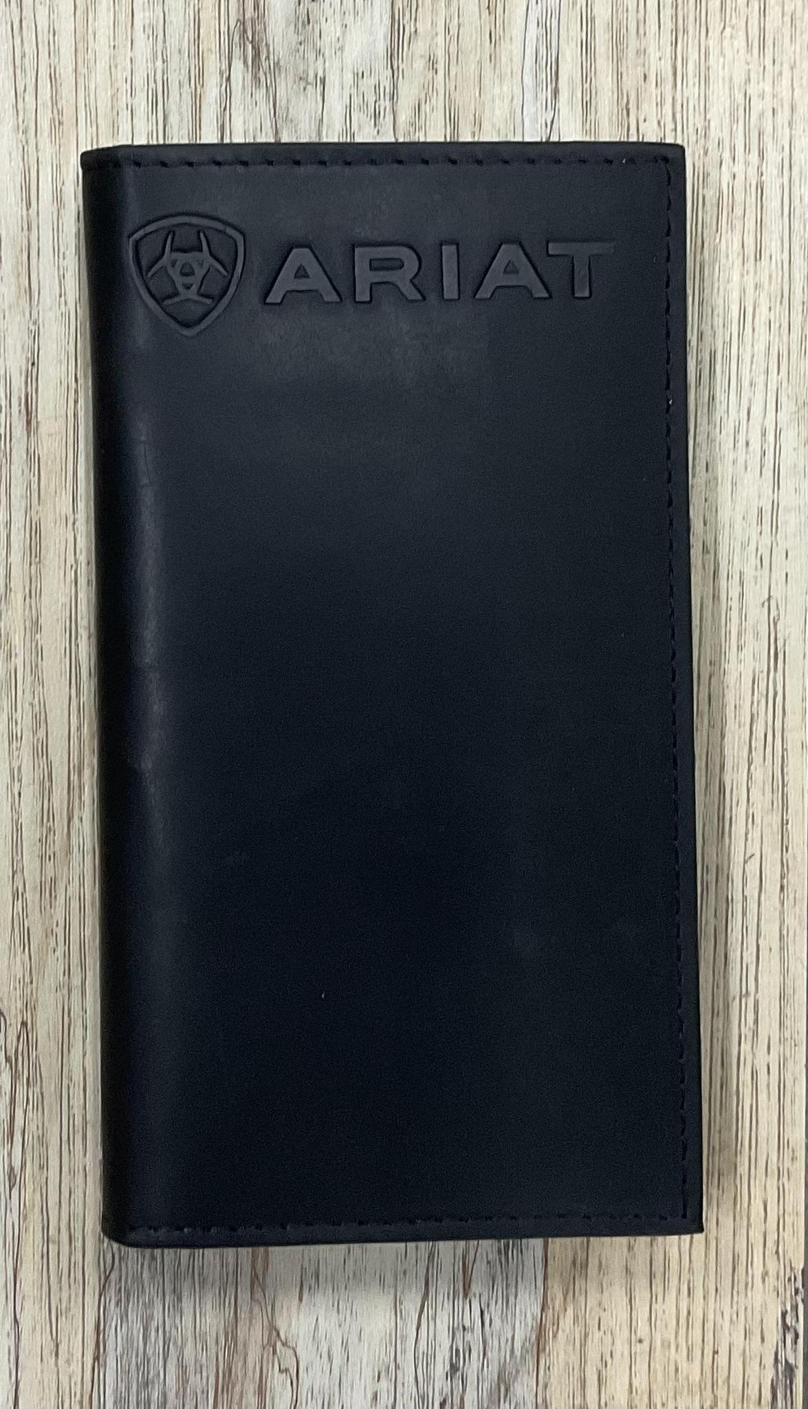 Ariat® Men's Embossed Logo Black Checkbook Rodeo Wallet | A3548601