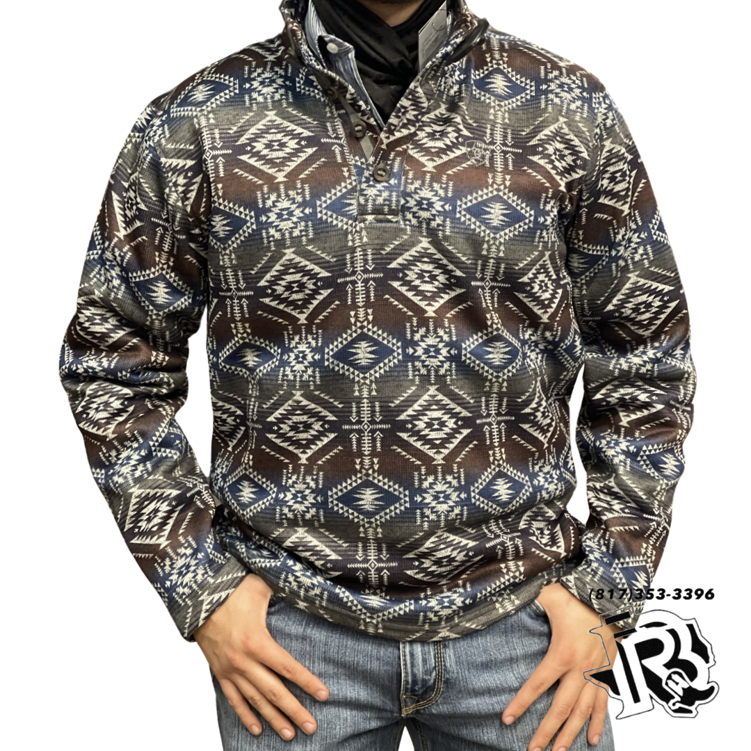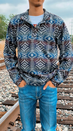 Ariat Men's Wesley Jetty Grey Dark Olive & Navy Aztec 1/4 Button Sweater Pullover| 10046145