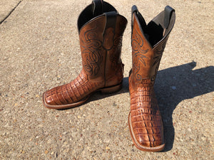 CAIMAN TAIL ORIGNAL | TAN SQUARE TOE MEN SQUARE TOE BOOTS