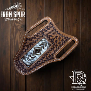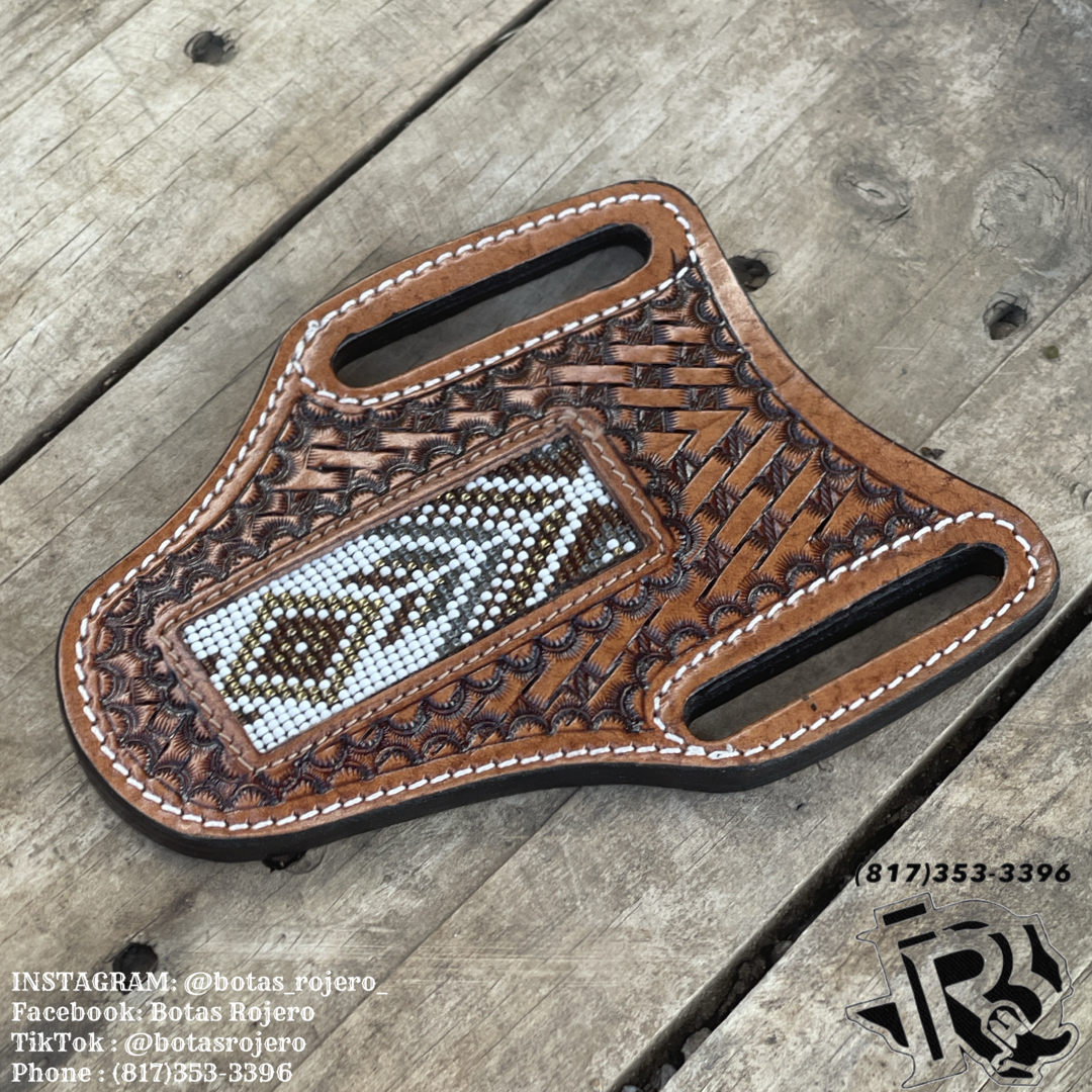 “ Damian “ | KNIFE SHEATH WESTERN TOOLED LEATHER BEADED | IRON SPUR
