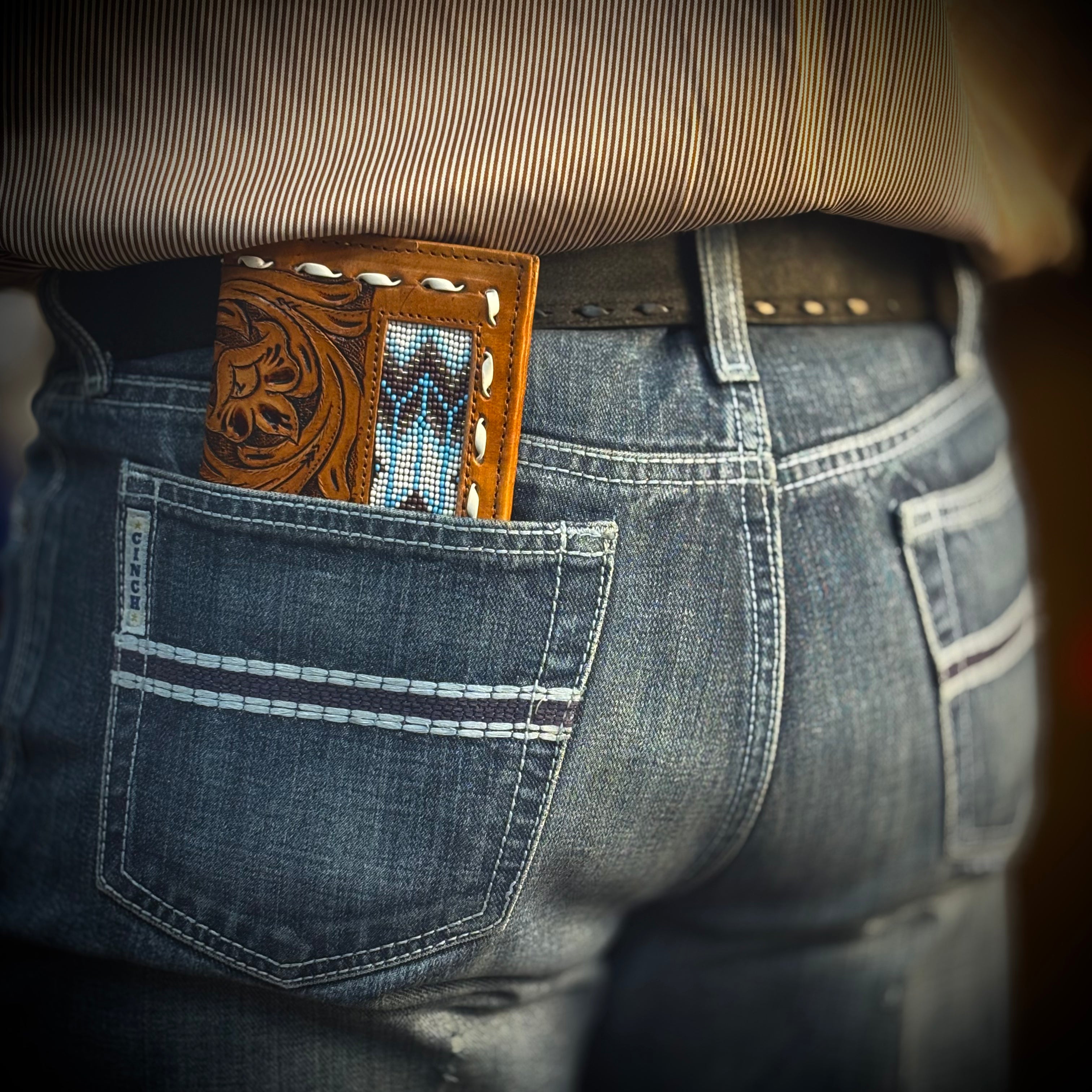 “ Fabian “ | MEN WESTERN WALLET BEADED LIGHT BLUE