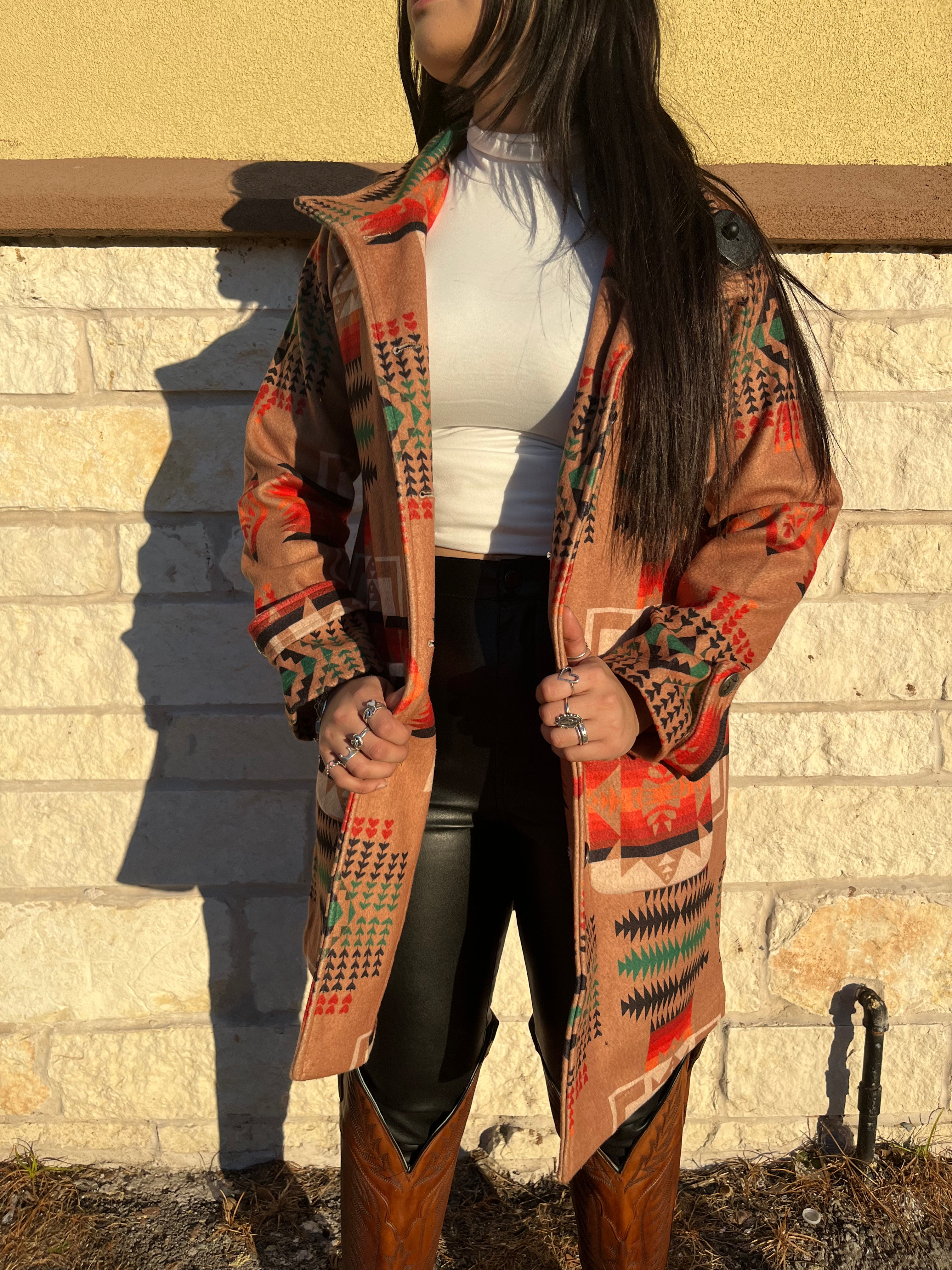 “ Lillie “ | WOMEN COAT WESTERN CAMEL AZTEC