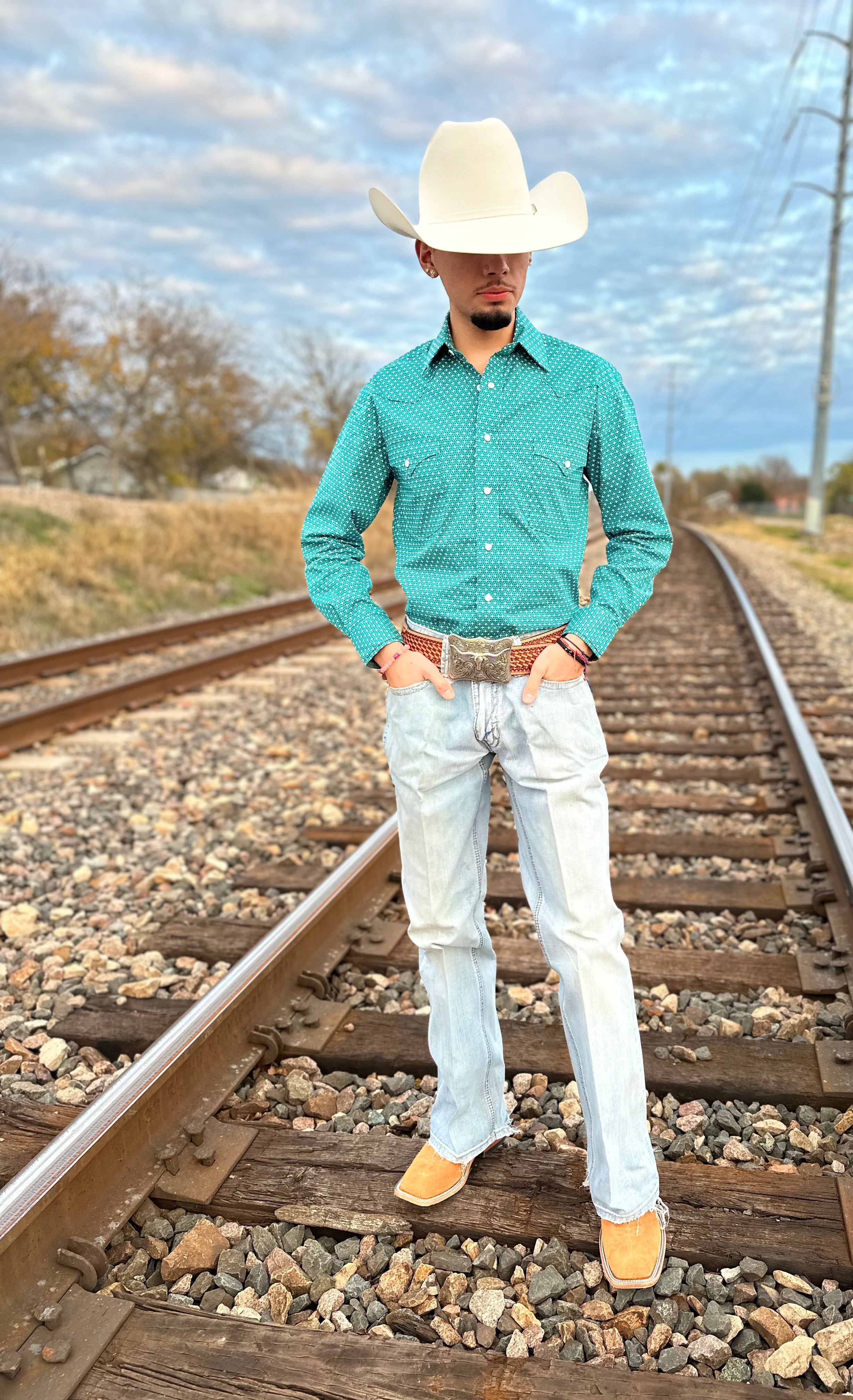 Men’s panhandle turquoise long sleeve shirt | RMN2S02801