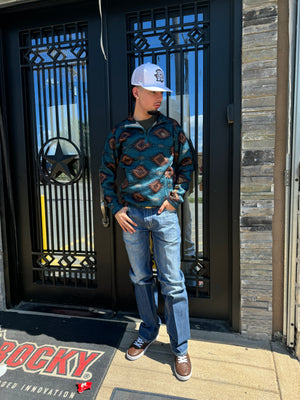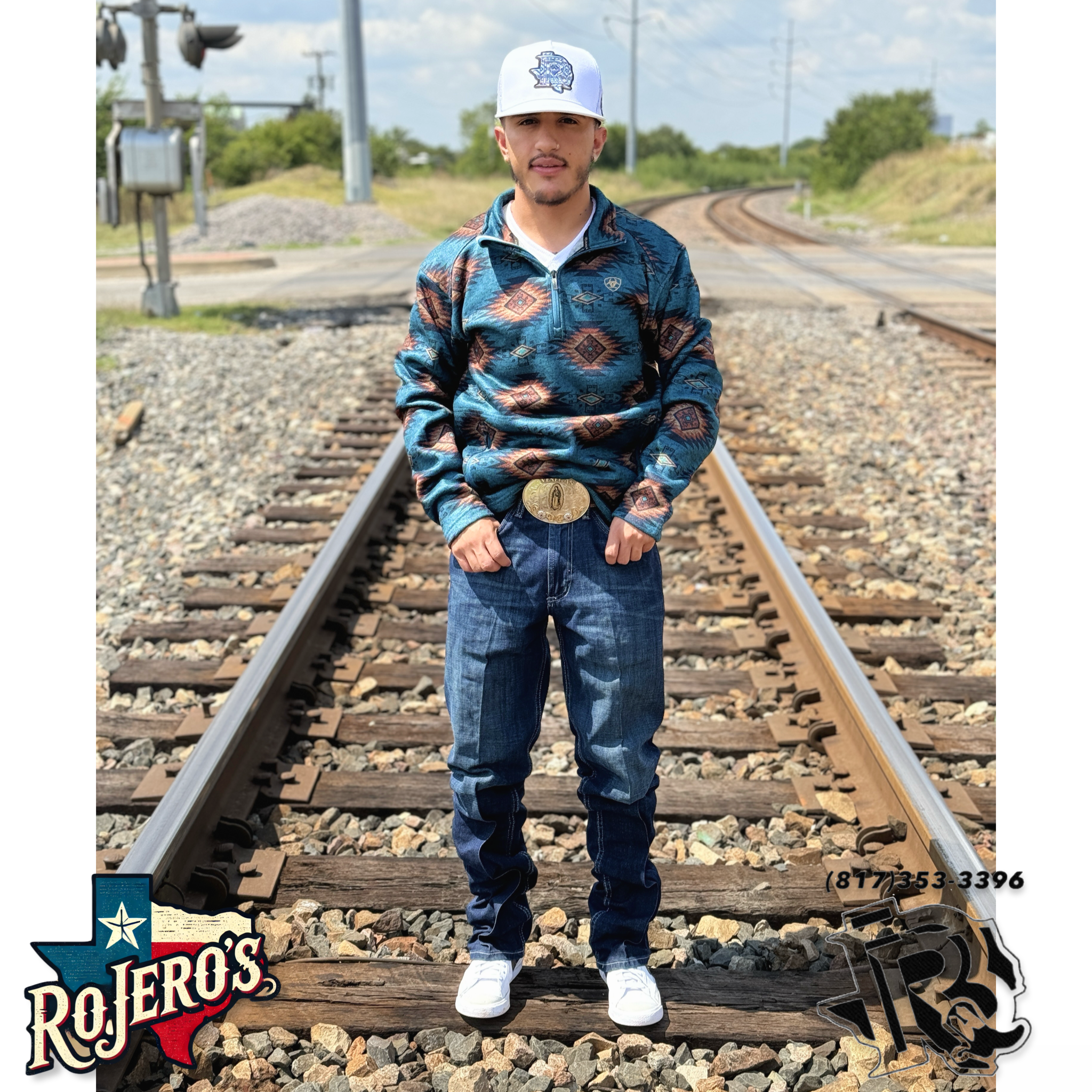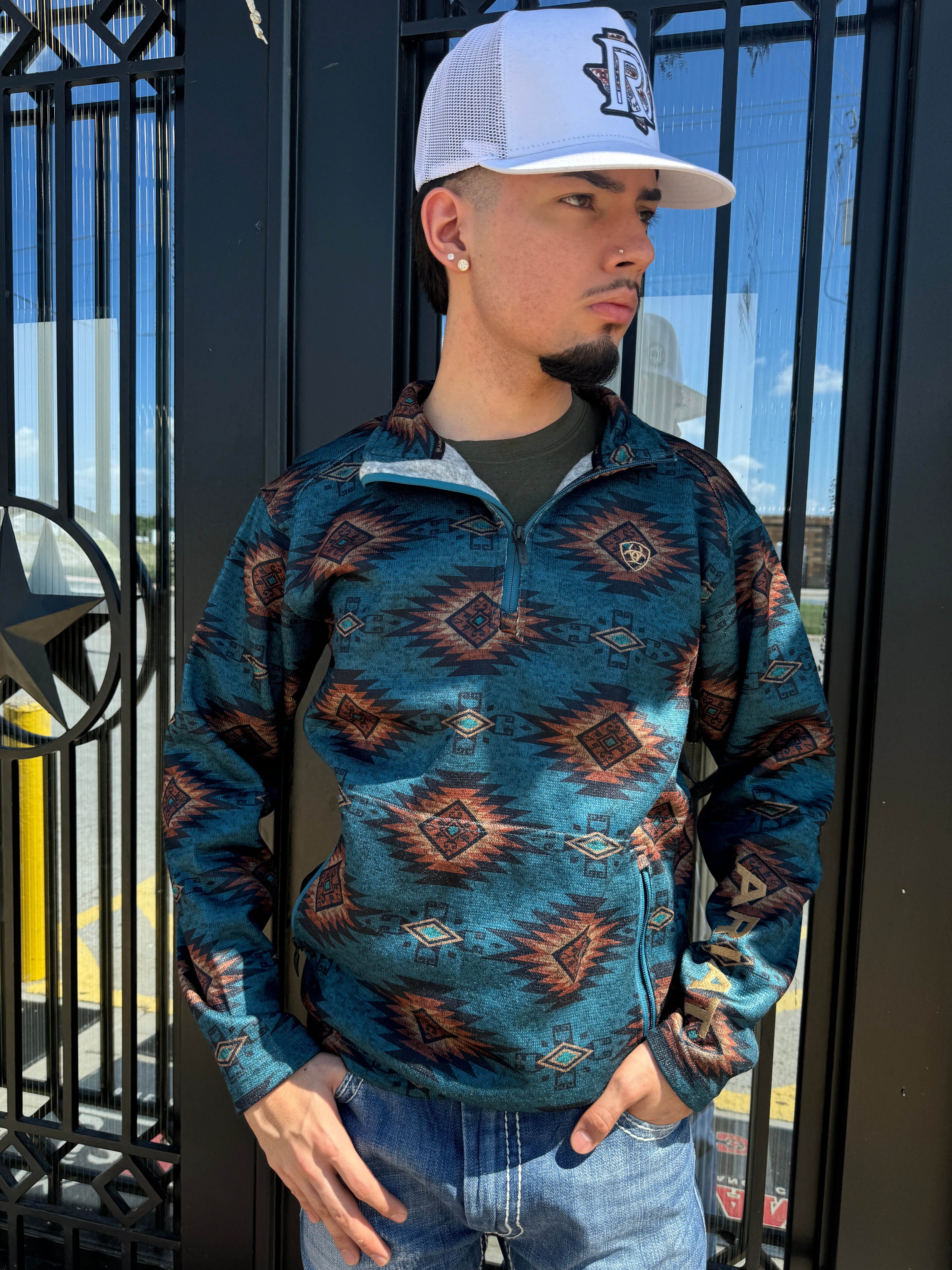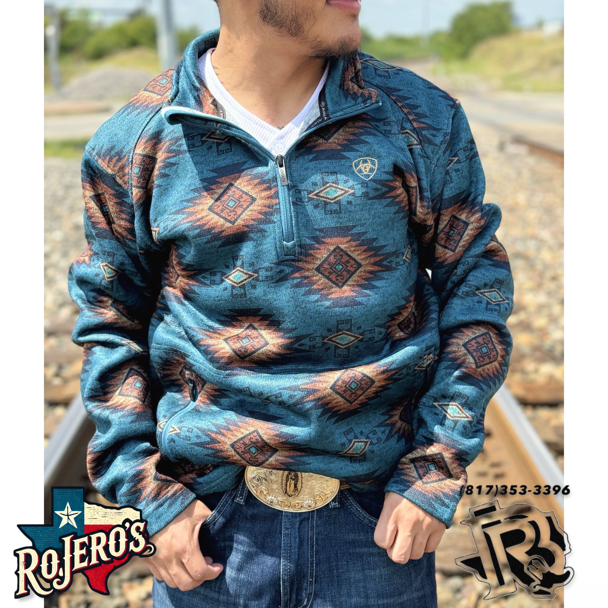MENS ARIAT CALDWELL LOGO BLUE CORAL SOUTHWEST SWEATER | 10053016