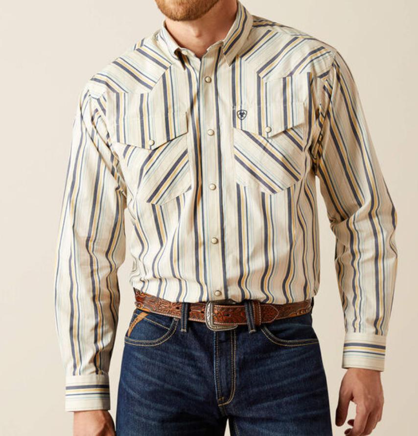 Mens Ariat Finley snap long sleeve cream shirt | 10054659