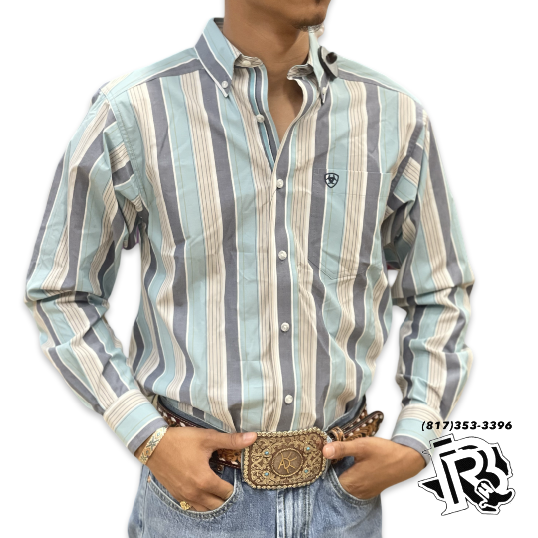 Mens Ariat Pro Elliot long sleeve blue shirt | 10051271