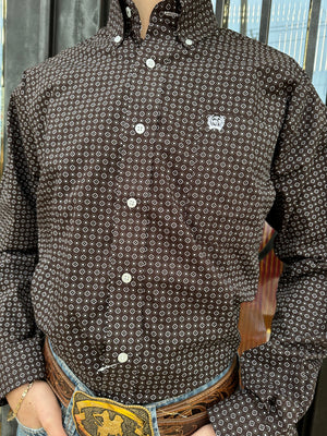 MEN'S GEOMETRIC PRINT BUTTON-DOWN WESTERN SHIRT - BROW CINCH | MTW1105487