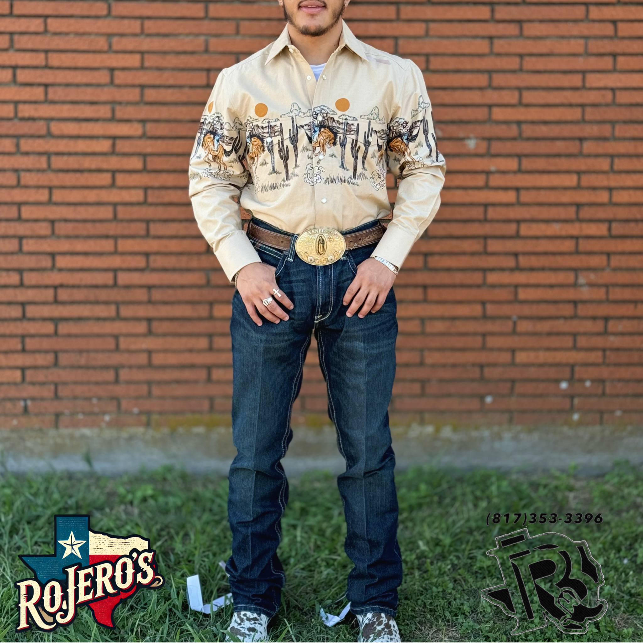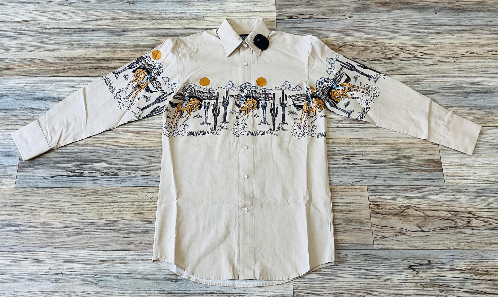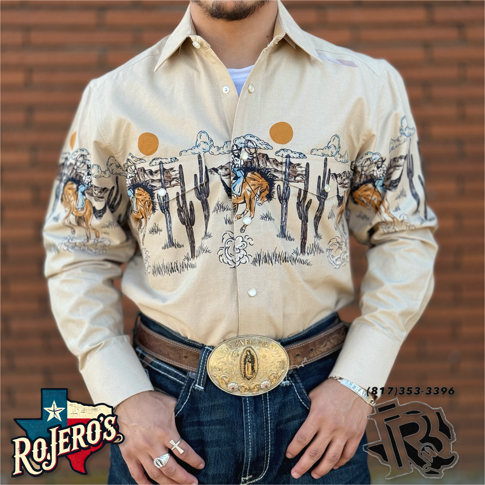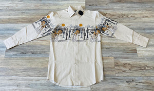 Mens Rock & Roll long sleeve 2pkt bronc border tan shirt | SMN2S03217