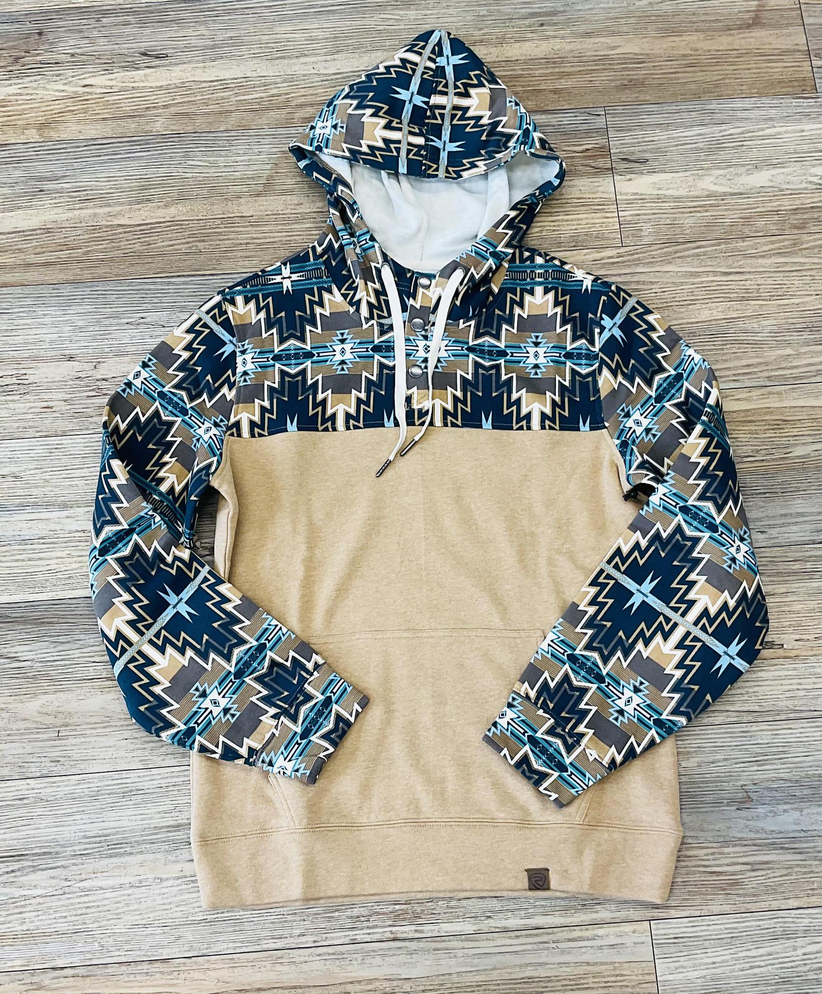 MENS ROCK & ROLL TAN PRINTED HOODIE | BM94T05360