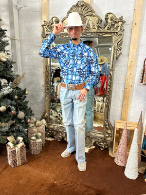 ROCK & ROLL MENS AZTEC PRINT LONG SLEEVE SNAP SHIRT | VMN2S02518