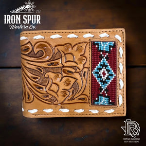 “ THOMAS “ | IRON SPUR WESTERN CO MEN BI FOLD WESTERN TOOLED LEATHER WALLET BEADED