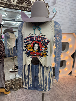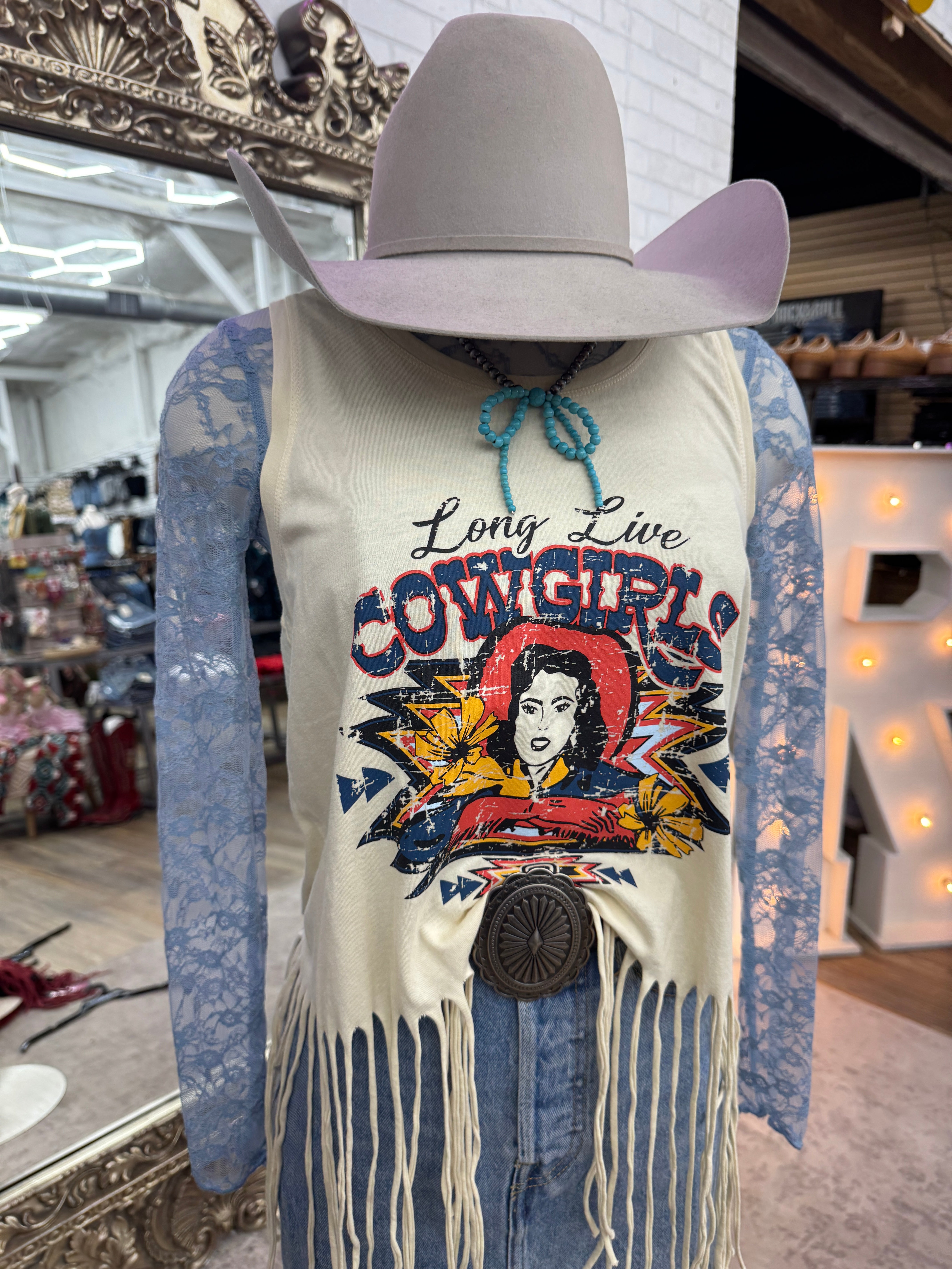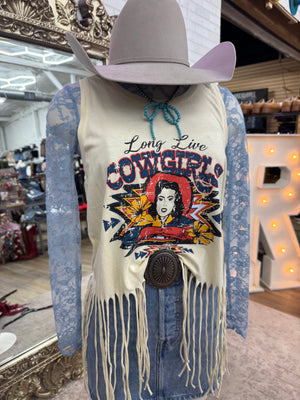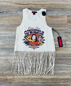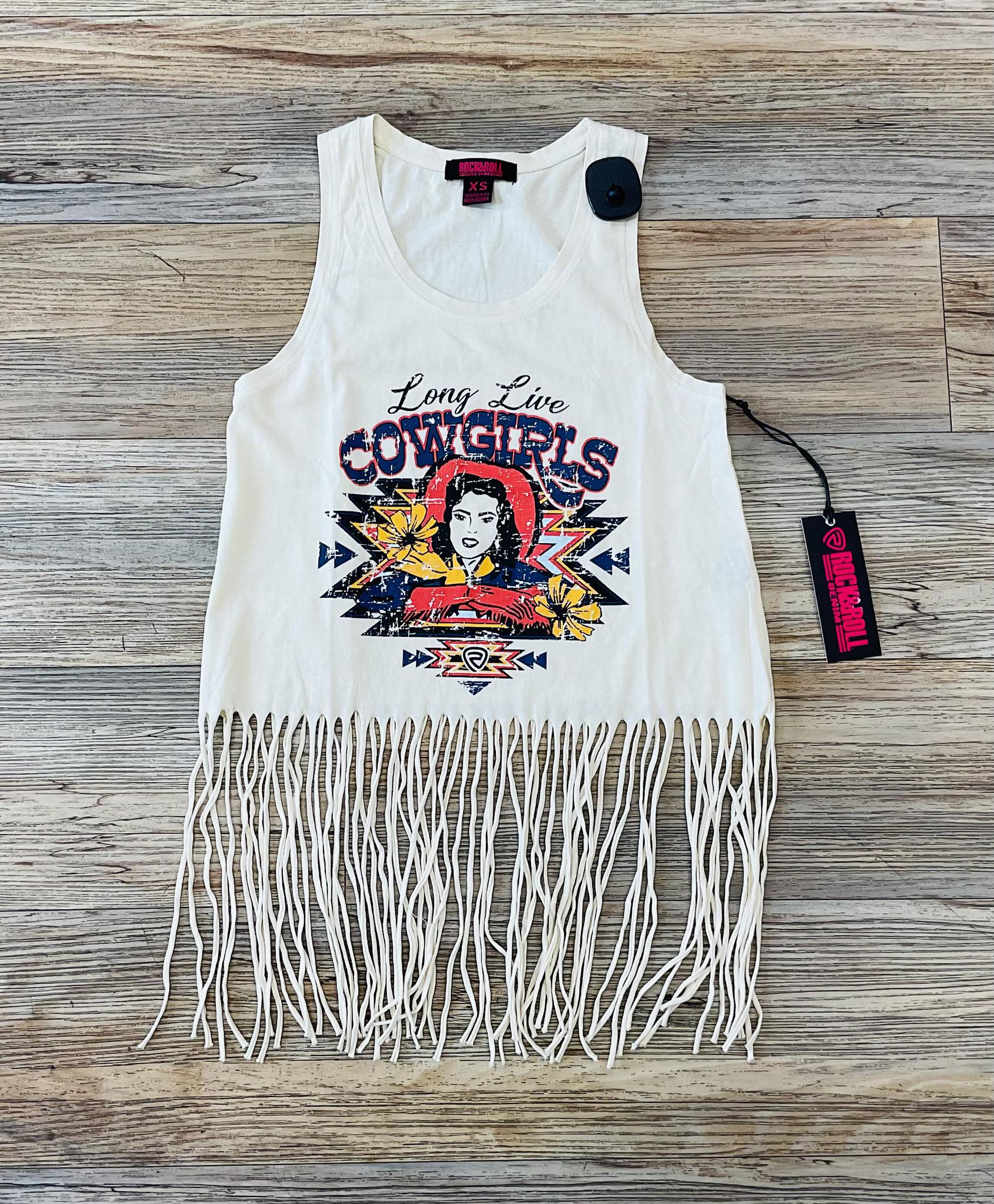 Womens Rock & Roll cowgirl Fringe Tank eggshell| BW20T04016